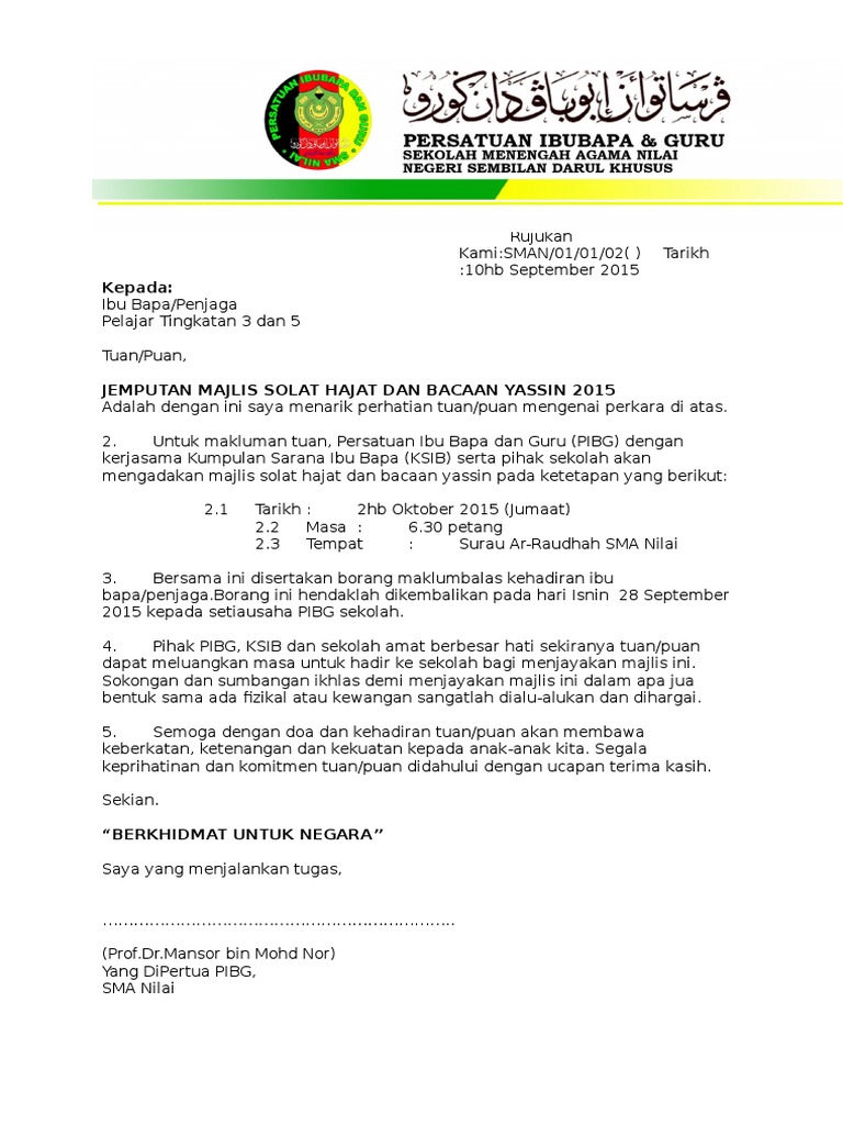 Surat Jemputan Program Solat Hajat Letter 7saudara Com
